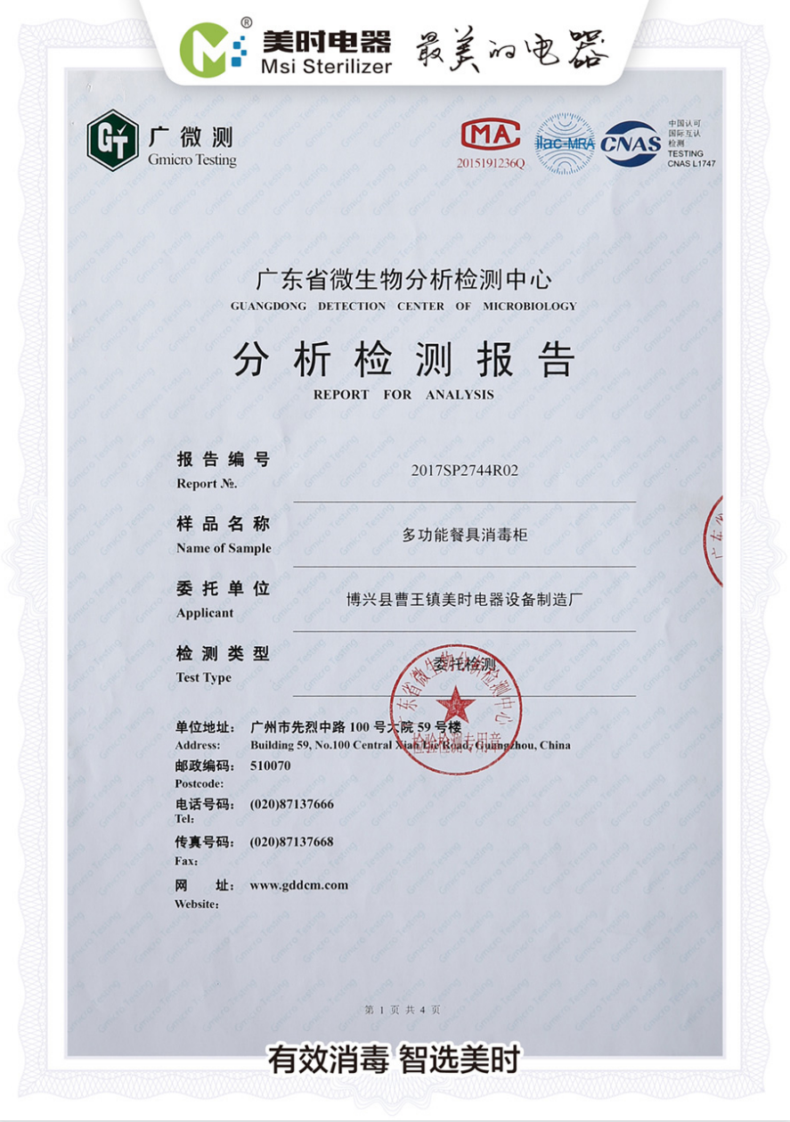 本公司引进先进的质量检测设备,以控制所有消毒柜。